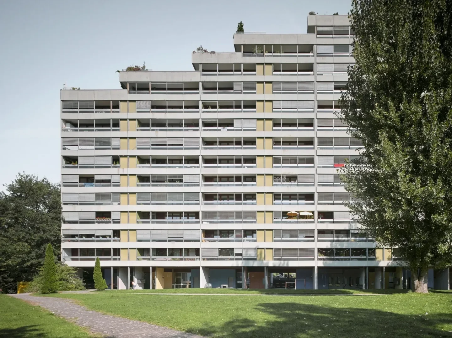 Fazit: Im Tscharnergut überzeugt die Strategie der schrittweisen, substanzschonenden Erneuerung: technisch umfassend, sozial verträglich organisiert und gestalterisch am Bestand orientiert. Die Sanierung ist hier kein radikaler Umbau, sondern ein langfristiger Transformationsprozess, der die vorhandene Bauweise respektiert.