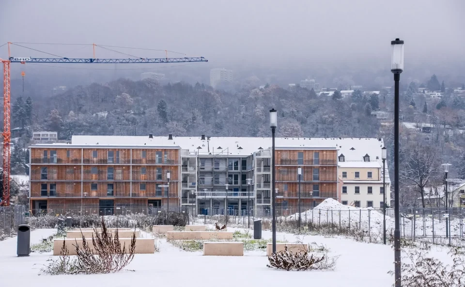 FM: Ja. Wir haben uns zum Ziel gesetzt, möglichst unabhängig von Institutionen zu sein. Wir wollten nicht, dass das CA irgendwann verkauft wird oder ein Investor nach langer Projektierung entscheidet, es werde nun doch nichts daraus. Deshalb traten wir dem Mietshäuser Syndikat bei. Dieser Dachverband ist auch Gesellschafter unserer GmbH, hat aber nur in bestimmten Angelegenheiten wie Hausverkauf oder Satzungsänderungen ein Vetorecht. Sonst regeln wir alles selbst. Mit dem Entscheid für das Mietshäuser Syndikat ergab sich auch das Finanzierungsmodell: Wir stellen zwei Millionen Euro in Form privater Direktkredite bereit und erhalten knapp drei Millionen Euro Fördermittel von Bund, Land und Stadt. Auf dieser Grundlage vergibt die Bank uns einen zinsvergünstigten Kredit für nachhaltiges Bauen in der Höhe von elf Millionen Euro.